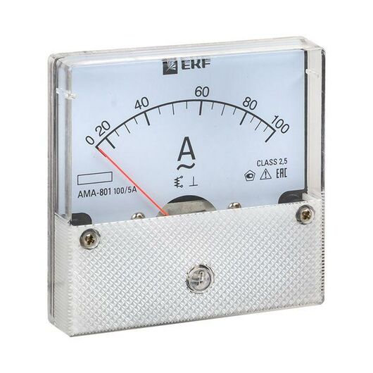 Амперметр аналоговый AM-A801 на панель 80х80 кругл. вырез 100А трансф. подкл. EKF am-a801-100/ama-801-100