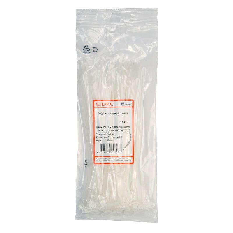Хомут кабельный 3.6х200 полиамид бел. (уп.100шт) DKC 25214