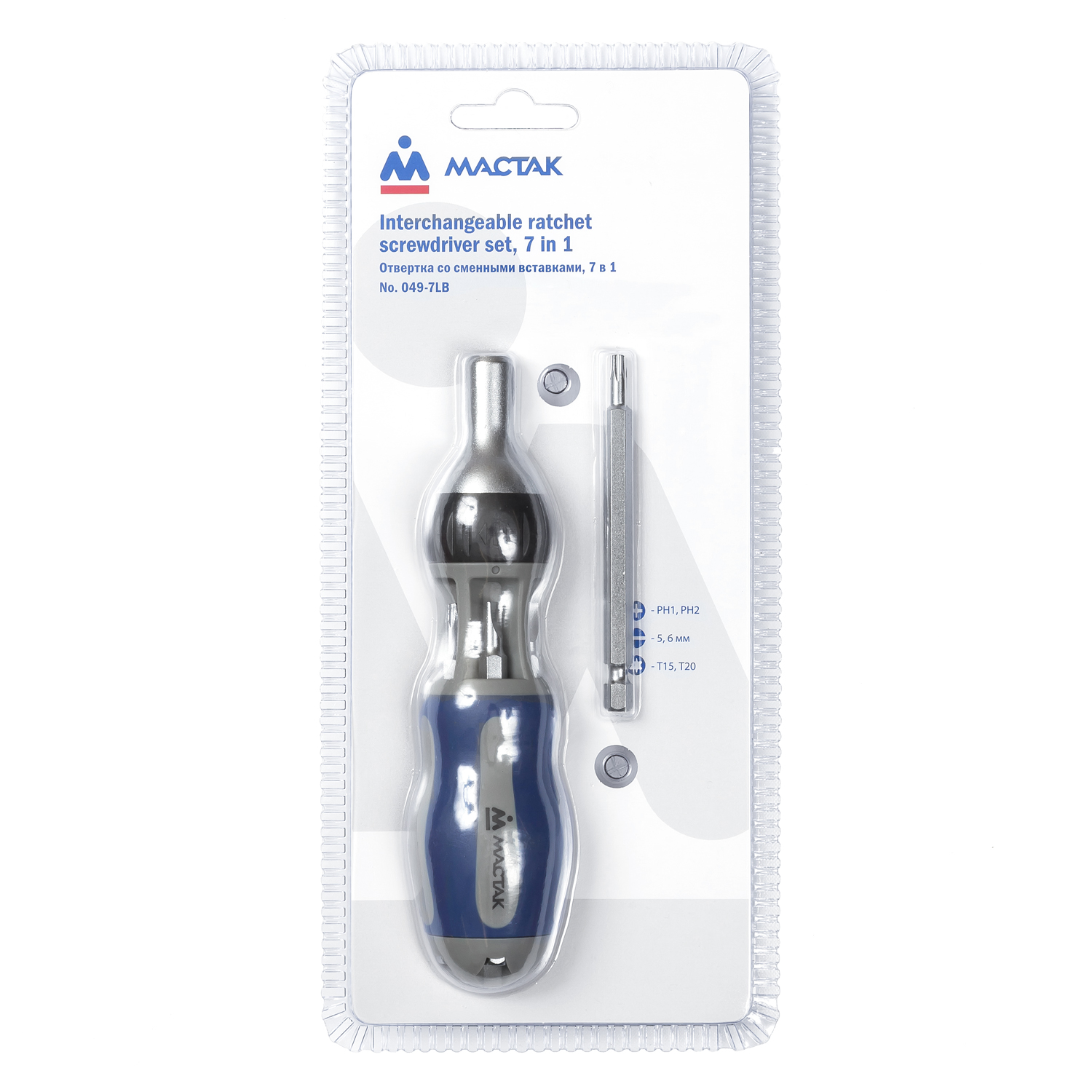 МАСТАК Отвертка со сменными вставками (битами), 7 в 1