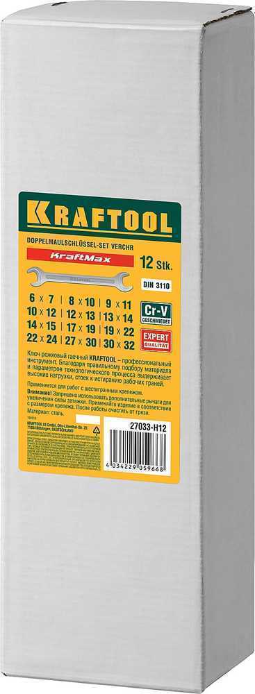 Набор рожковых гаечных ключей KRAFTOOL 12 шт 6 - 32 мм 27033-H12