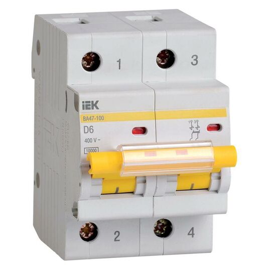 Выключатель автоматический модульный 2п D 6А 10кА ВА47-100 IEK MVA40-2-006-D